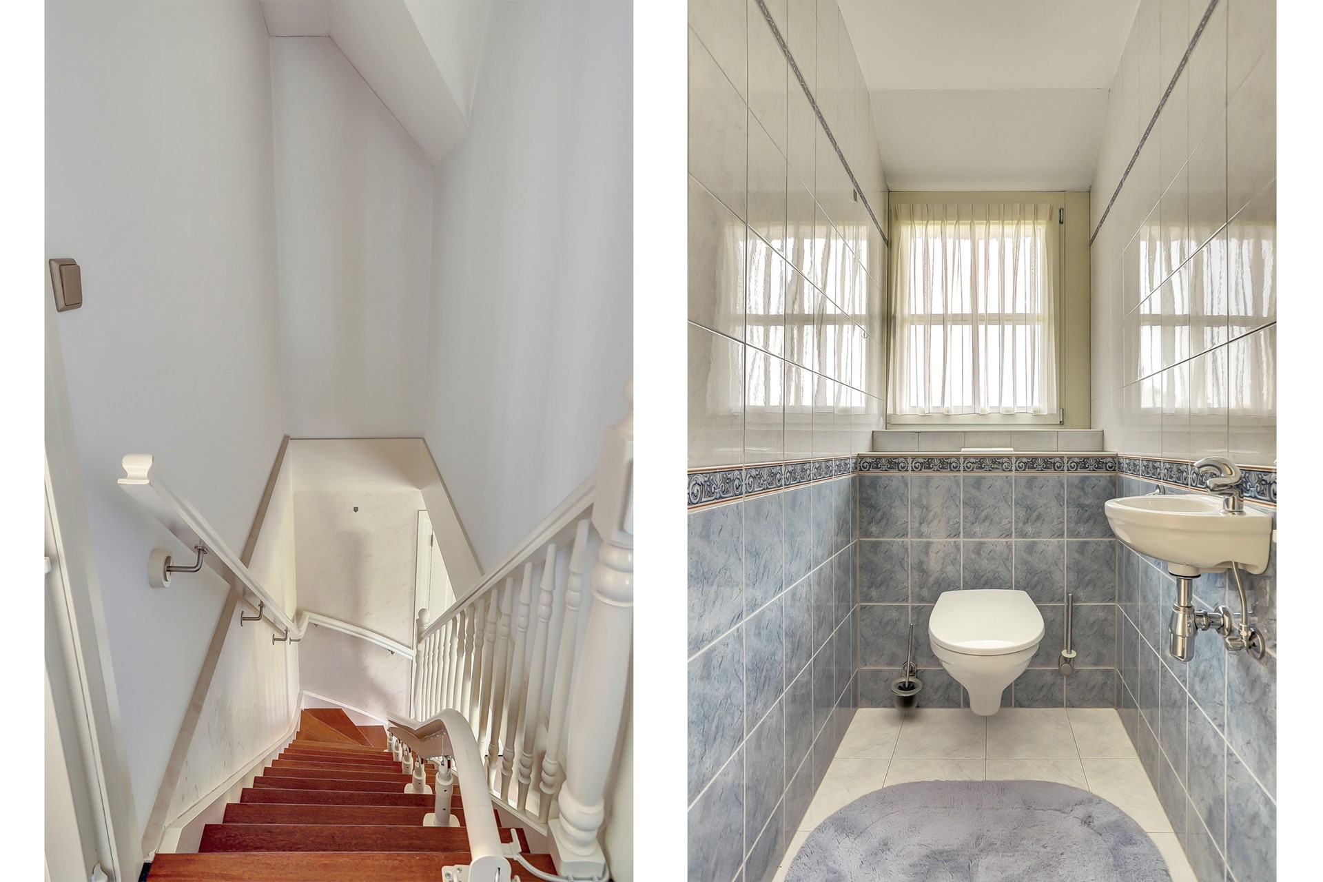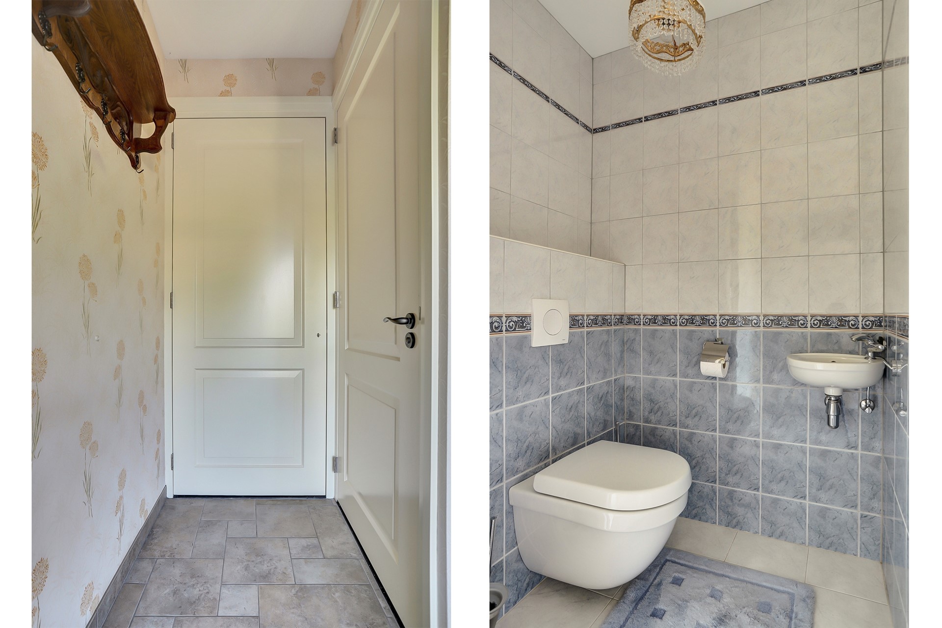 Verdieping: Overloop, 2 slaapkamers met wastafel en toilet.