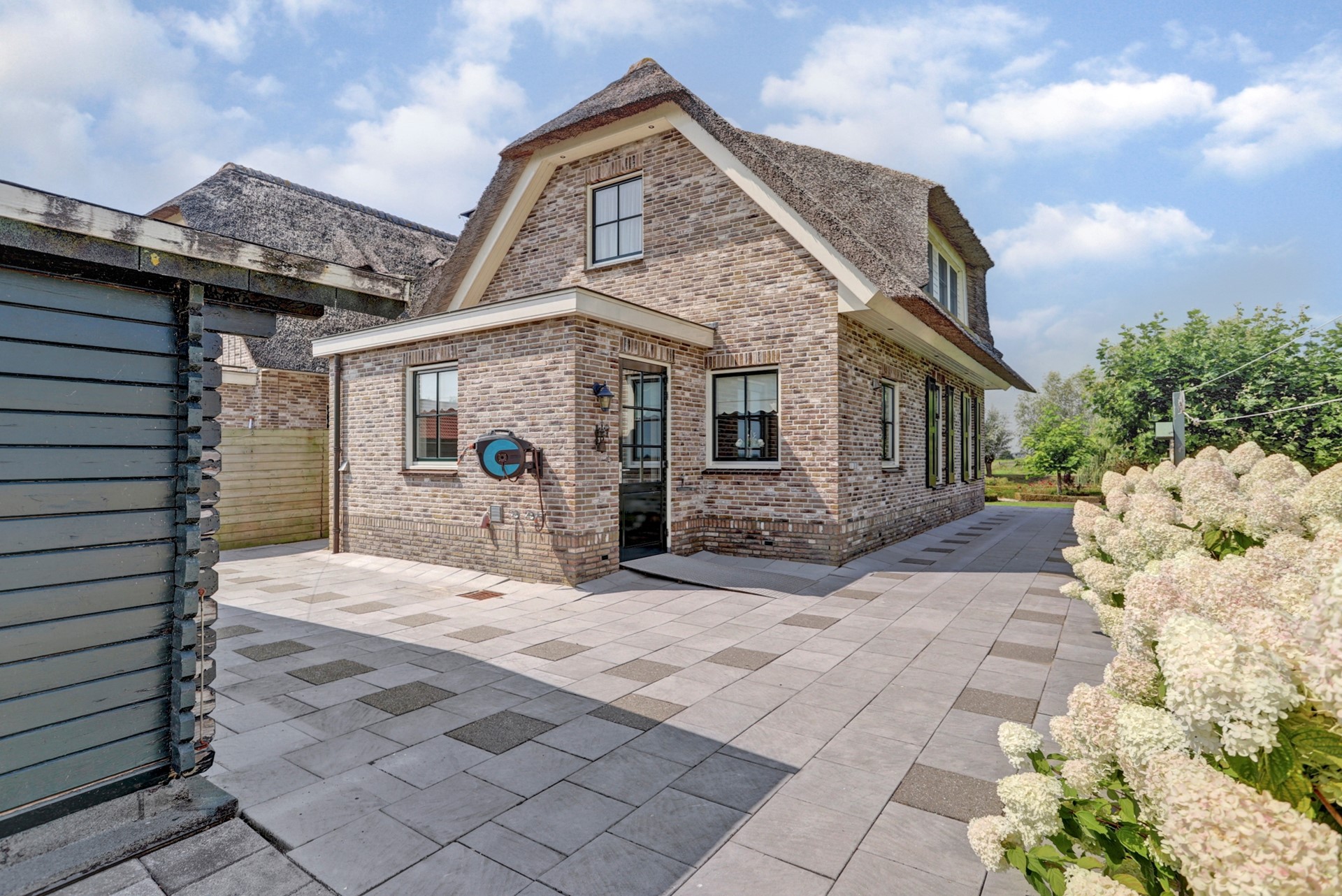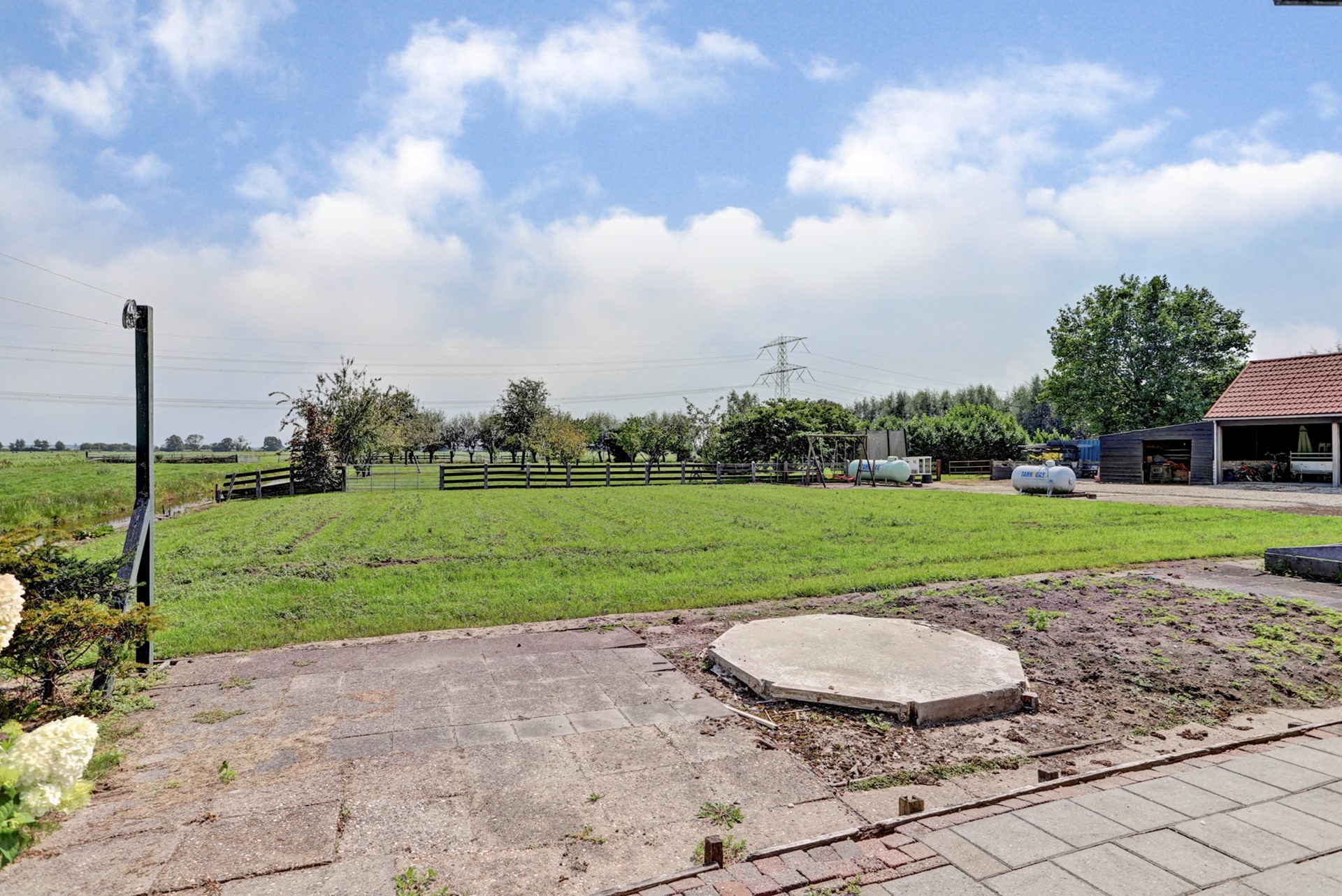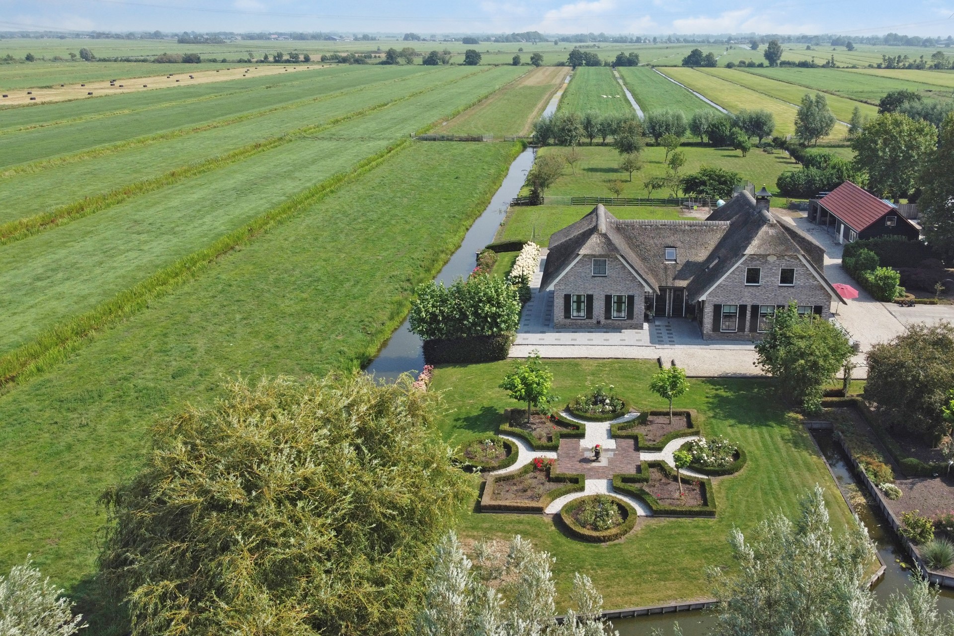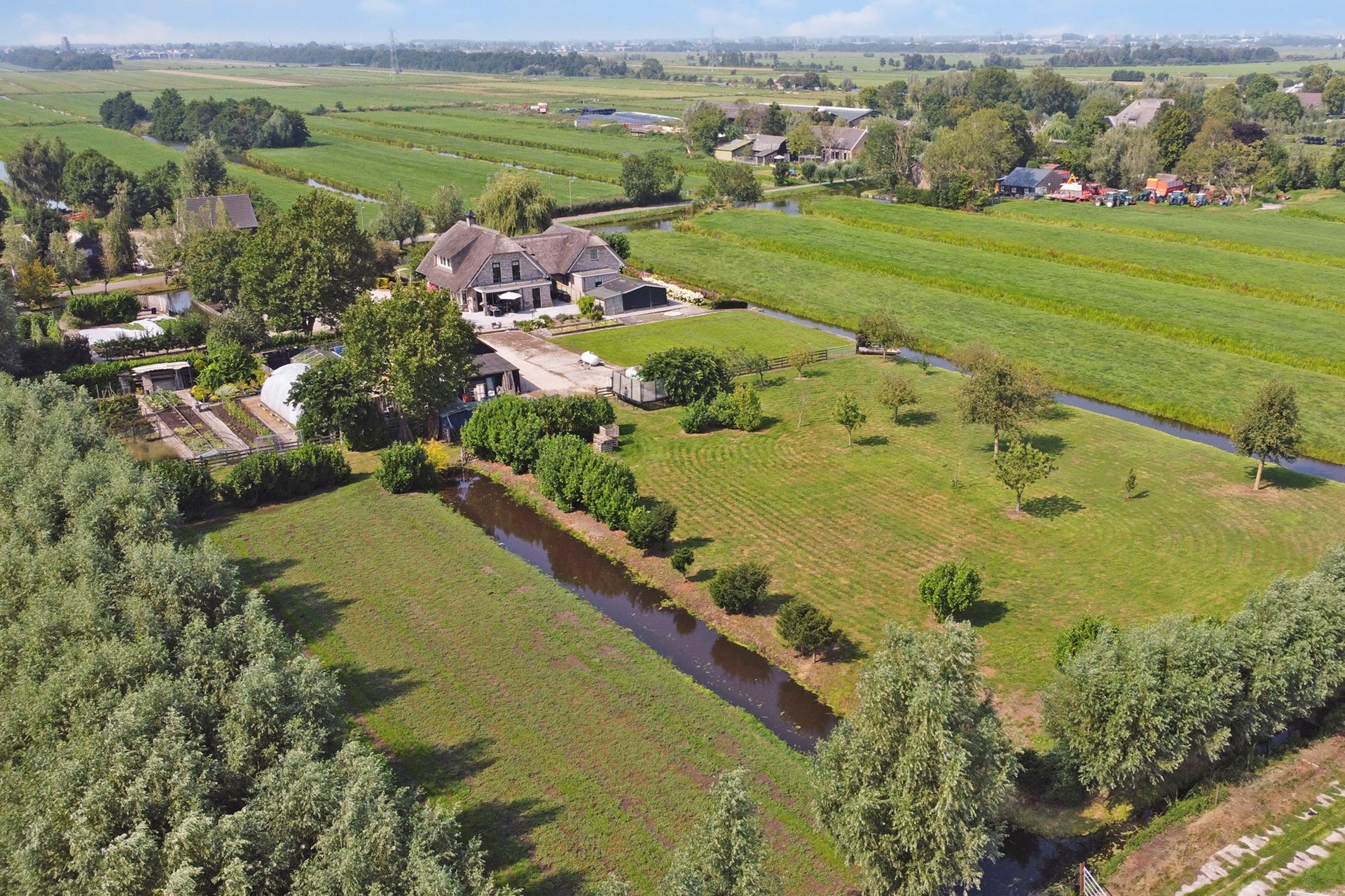 Het geheel wordt omringd door een fraai aangelegde, royale tuin met weids uitzicht over de polder, met twee ruime vrijstaande schuren en achter de woning een grasperceel, perfect voor het houden van kleinvee of andere doeleinden.
