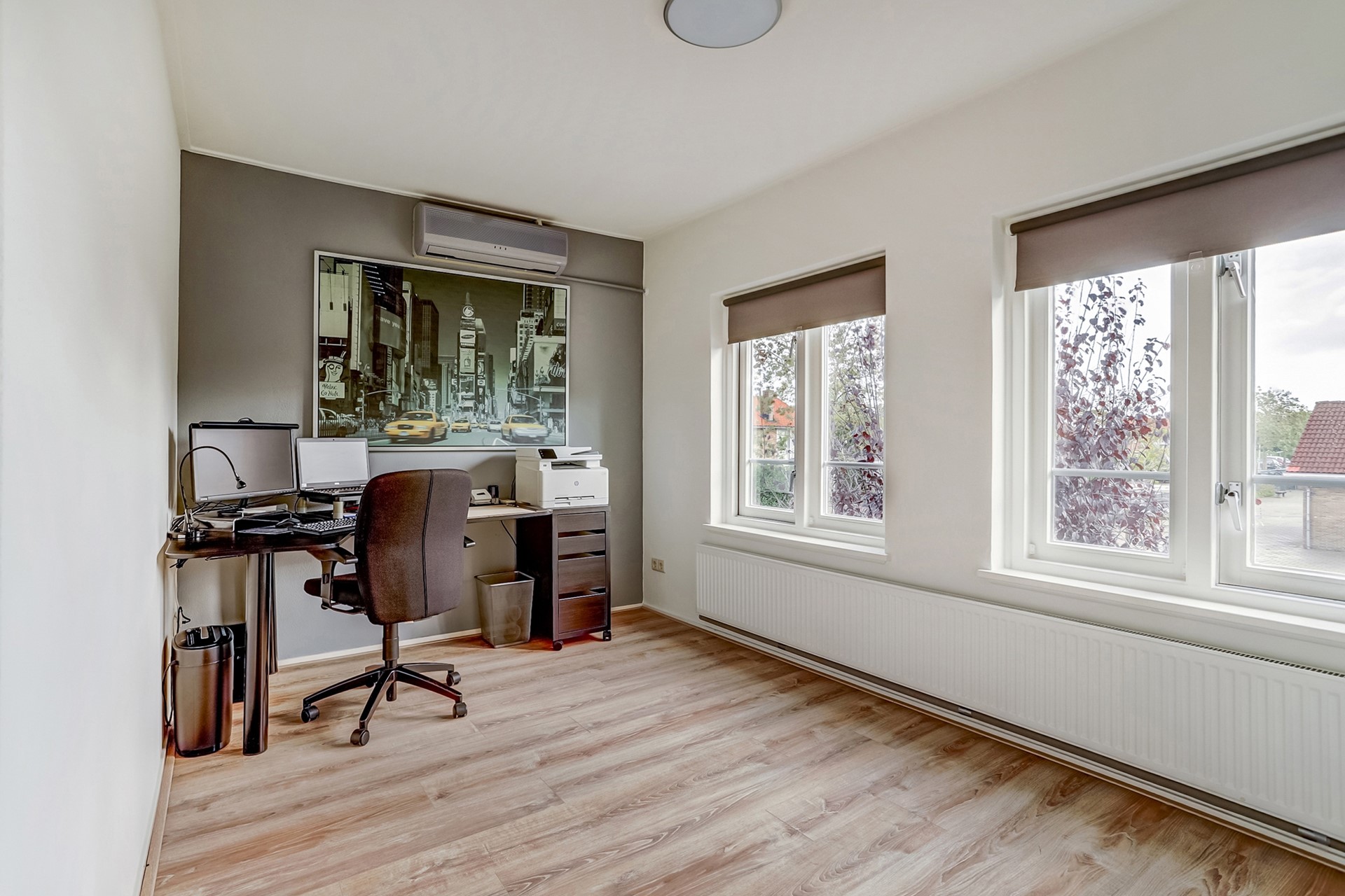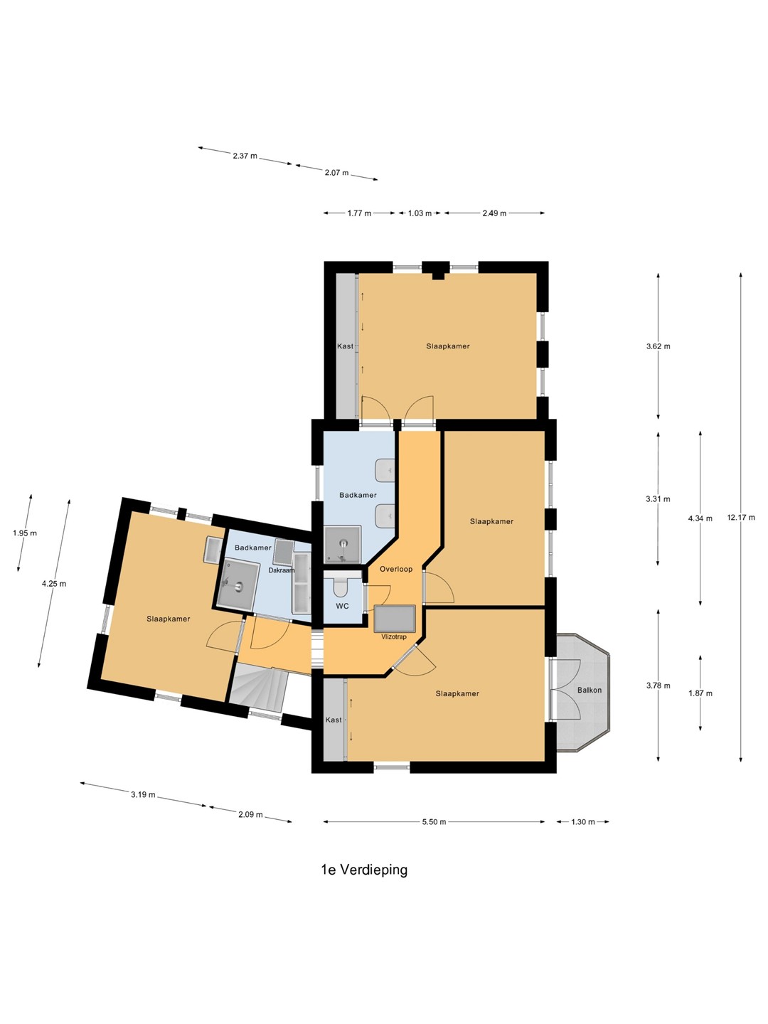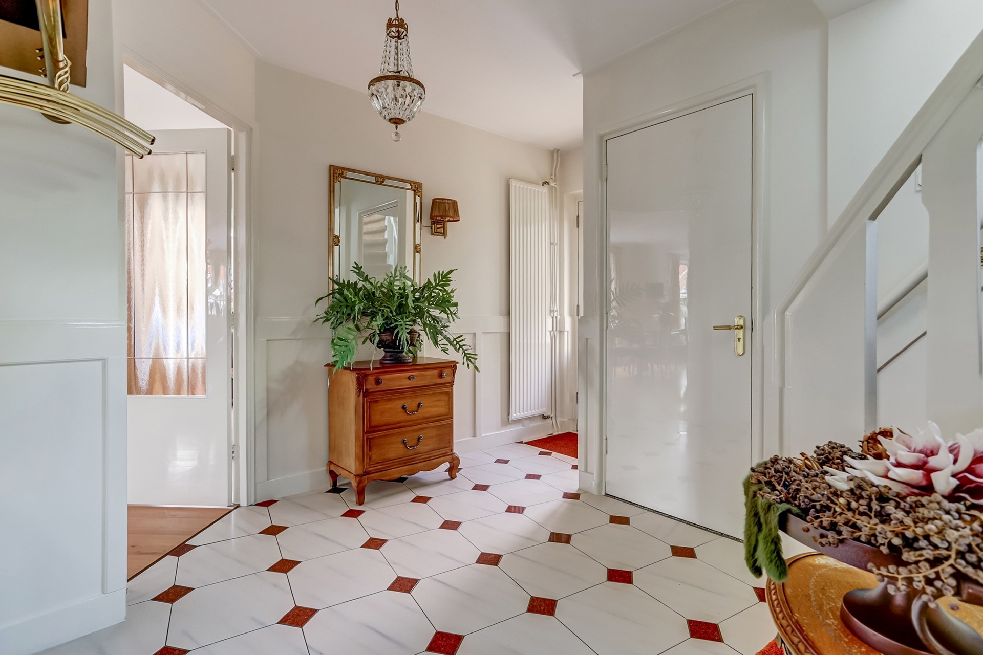 Verdieping: Op de eerste verdieping bevindt zich een ruime overloop die toegang biedt tot vier royale slaapkamers, een separate toiletruimte en twee badkamers. Alle slaapkamers zijn uitgerust met airconditioning, waarvan twee tevens beschikken over inbouwkasten. De zuidoostelijke slaapkamer biedt bovendien toegang tot het balkon.