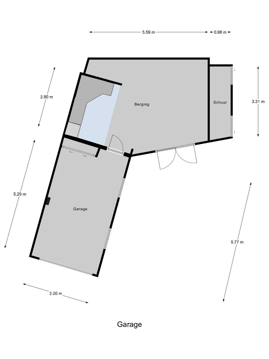 Garage: Royale vrijstaande garage van ca. 48,4 m², oorspronkelijk gebouwd in 1955. De garage is opgetrokken uit steen, voorzien van een betonnen vloer en een zadeldak met pannen. Deze is uitgerust met een elektrische roldeur, elektra, dubbel glas en muurisolatie. Tevens beschikt de garage over een praktische bergzolder.