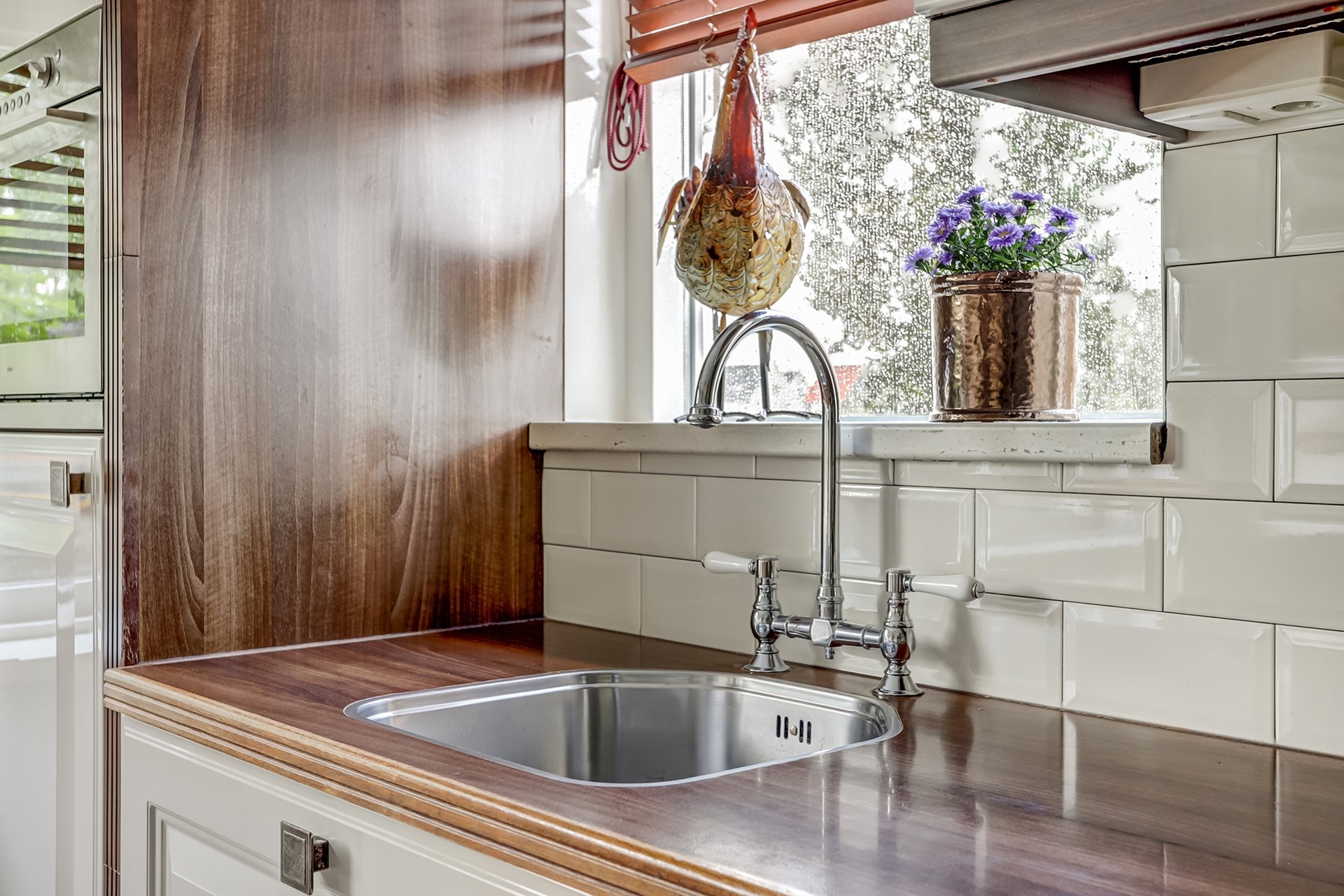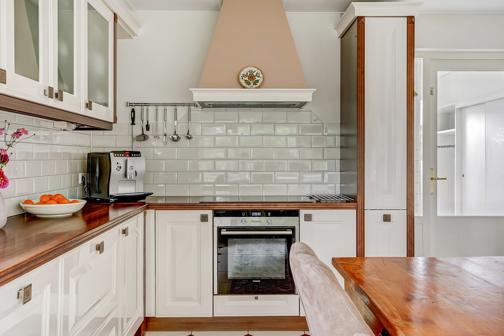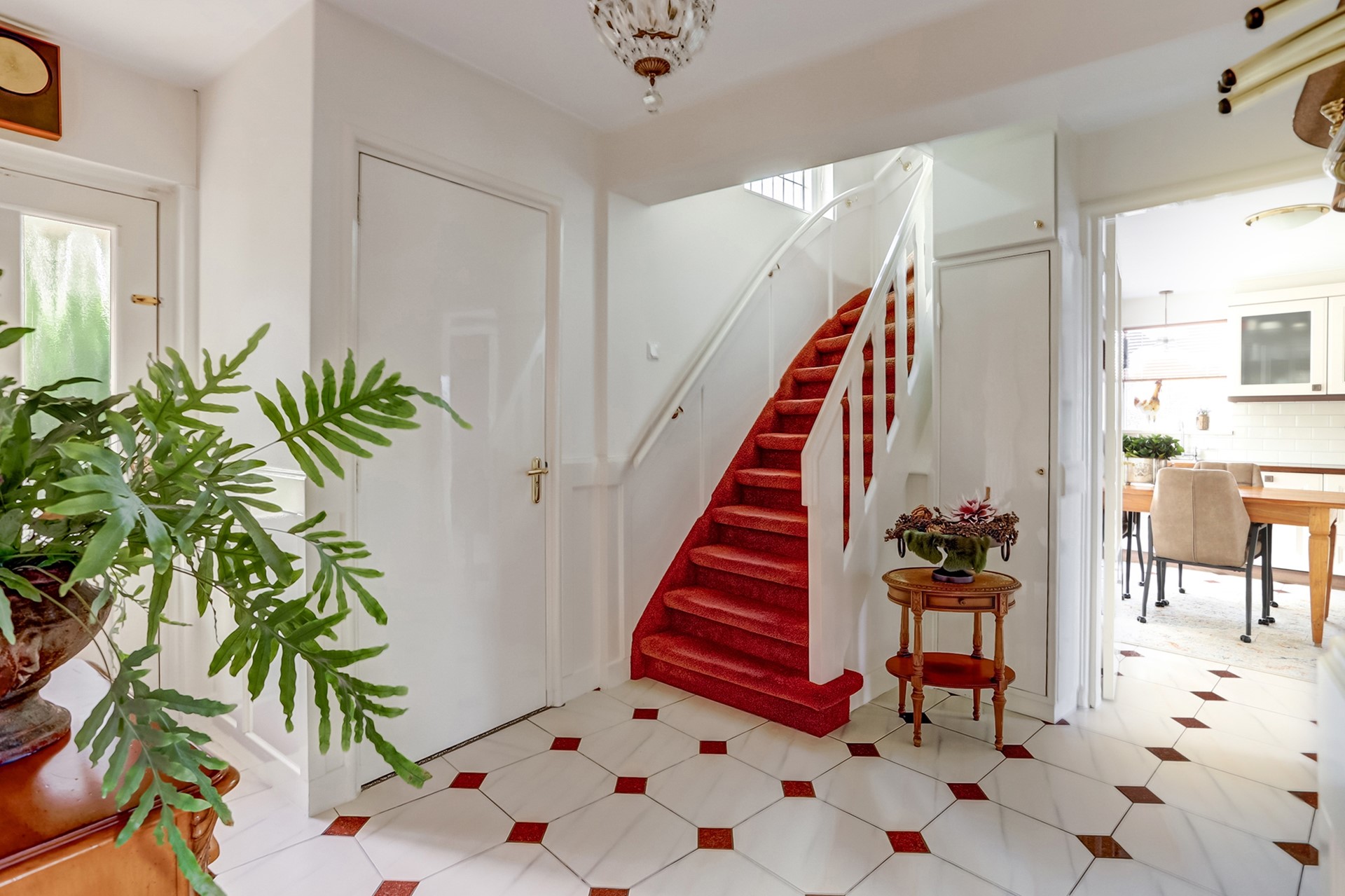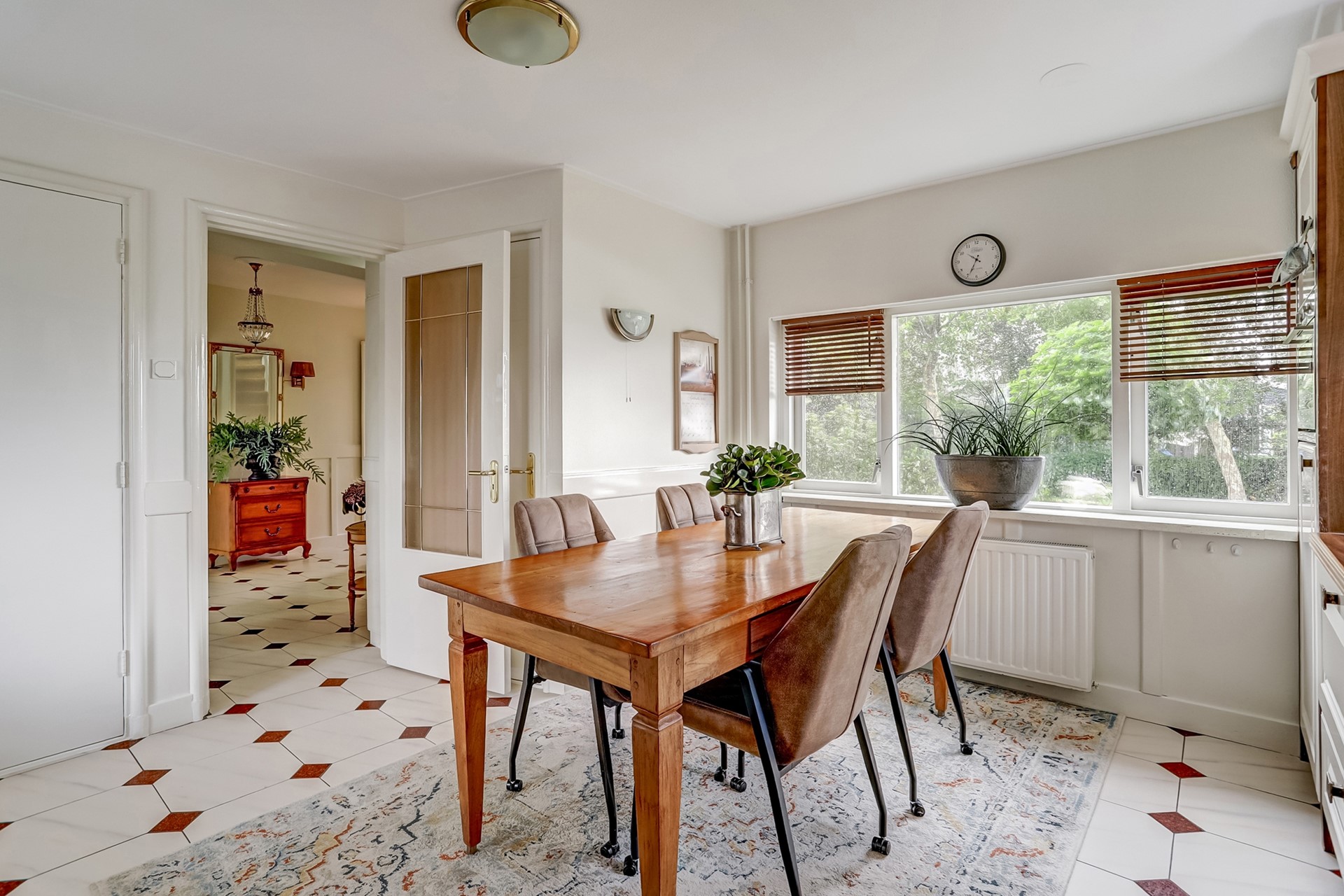 Vanuit de keuken heeft u toegang tot de opslagkelder (ca. 9,5 m²), waar zich ook de waterontharder bevindt, en tot de ruime bijkeuken met witgoedaansluiting, spoelbak en praktische inbouwkasten.